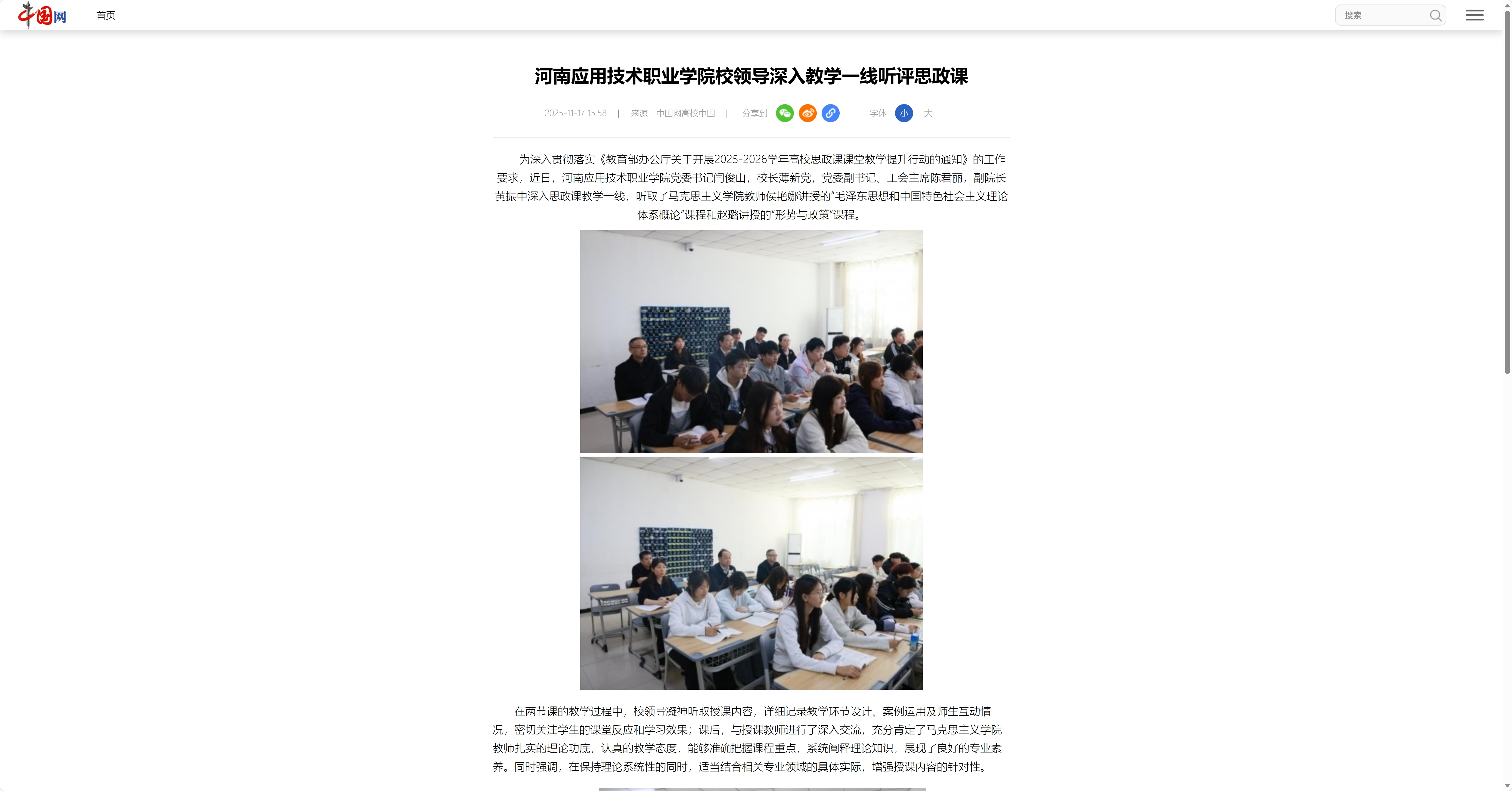 中华网:河南应用技术职业学院校领导深入教学一线听评思政课_中华网