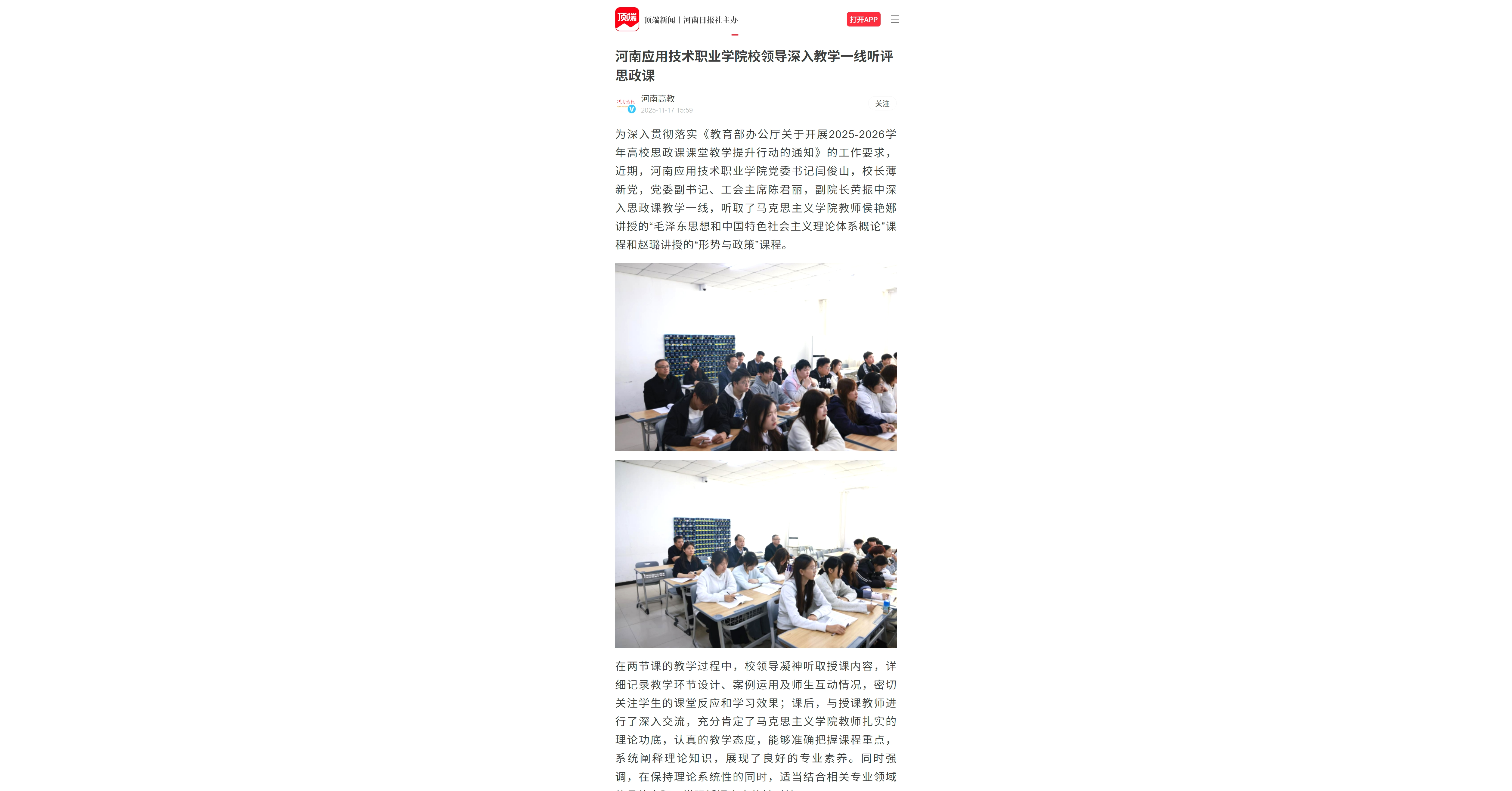 河南手机报:河南应用技术职业学院校领导深入教学一线听评思政课 - 新界 | 河南手机报