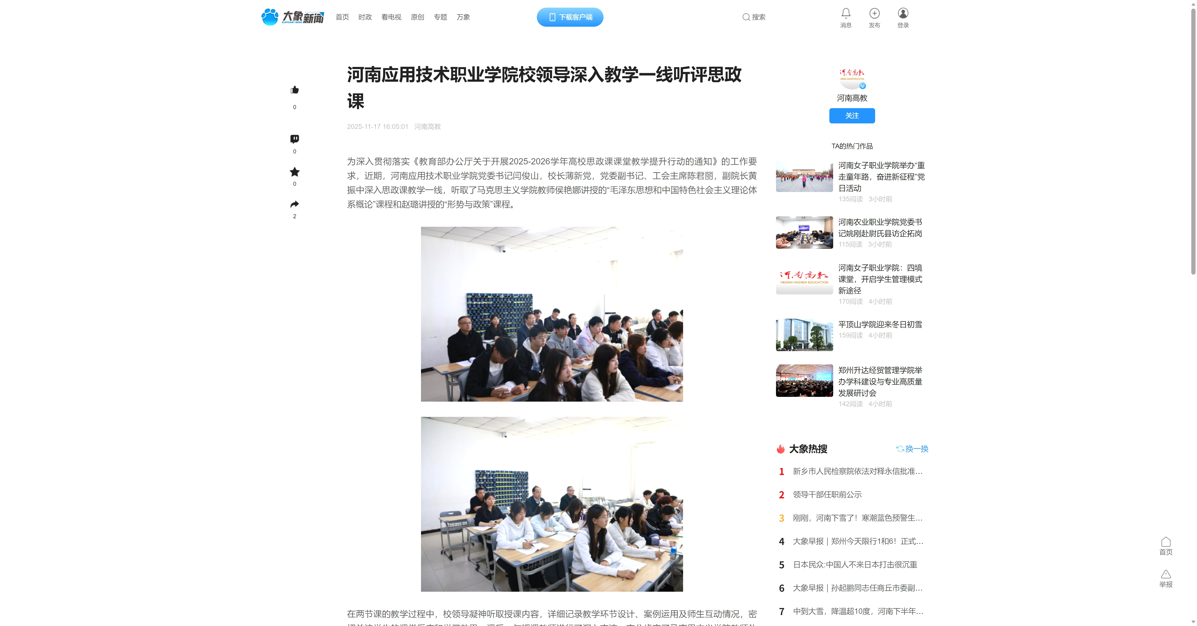 大象新闻:河南应用技术职业学院校领导深入教学一线听评思政课-大象网