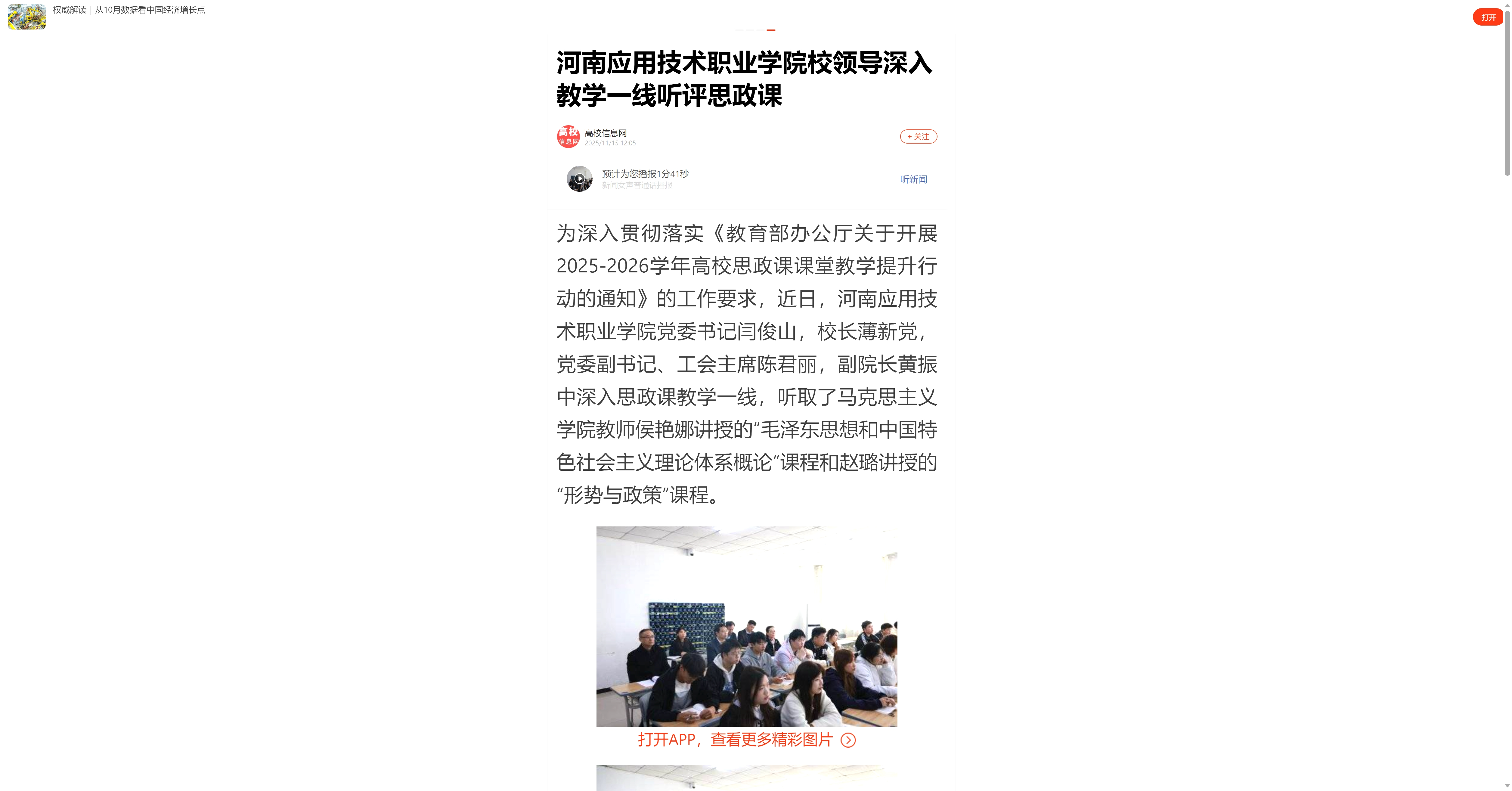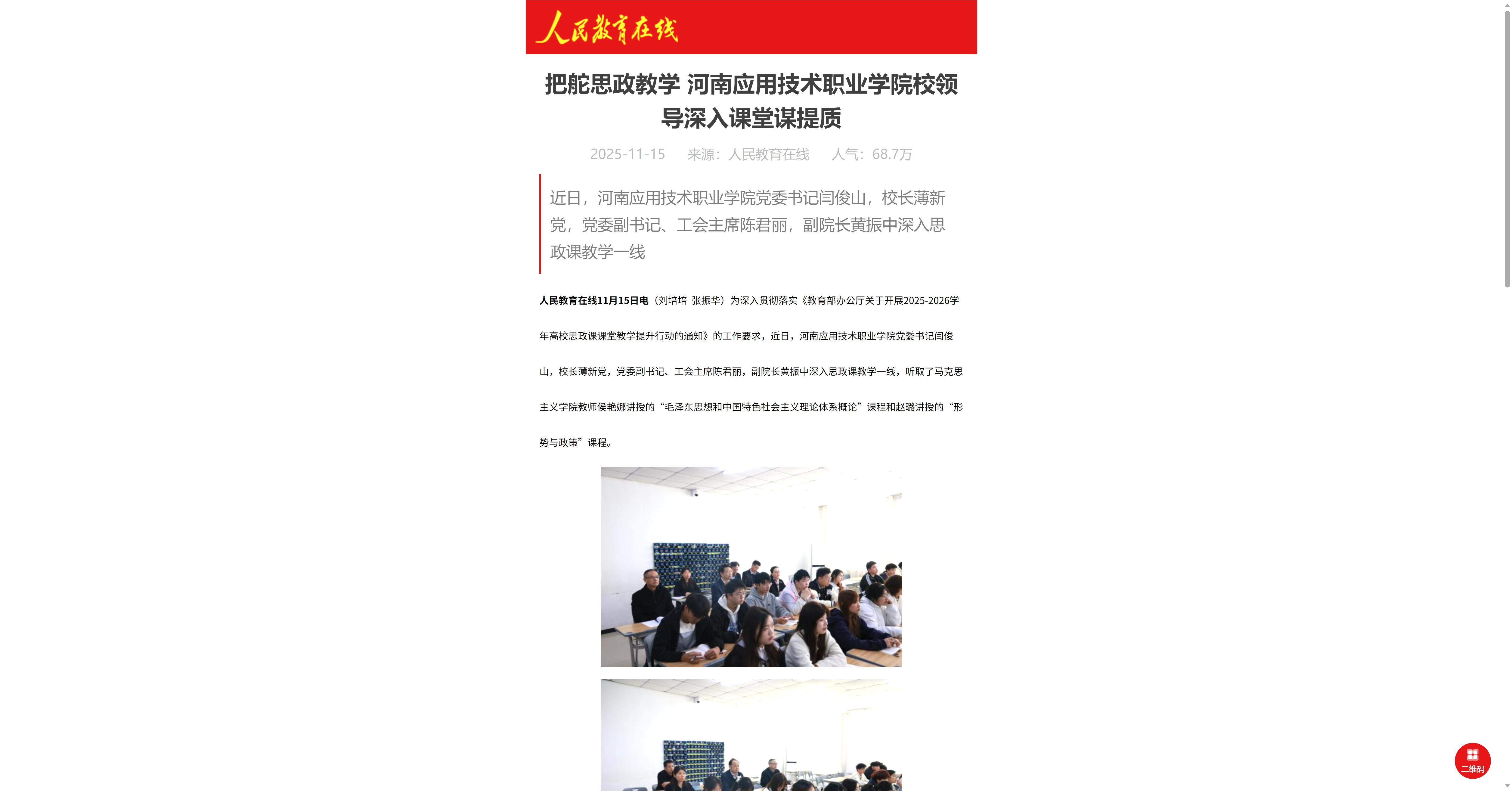 人民教育在线:把舵思政教学 河南应用技术职业学院校领导深入课堂谋提质 - 人民教育在线客户端