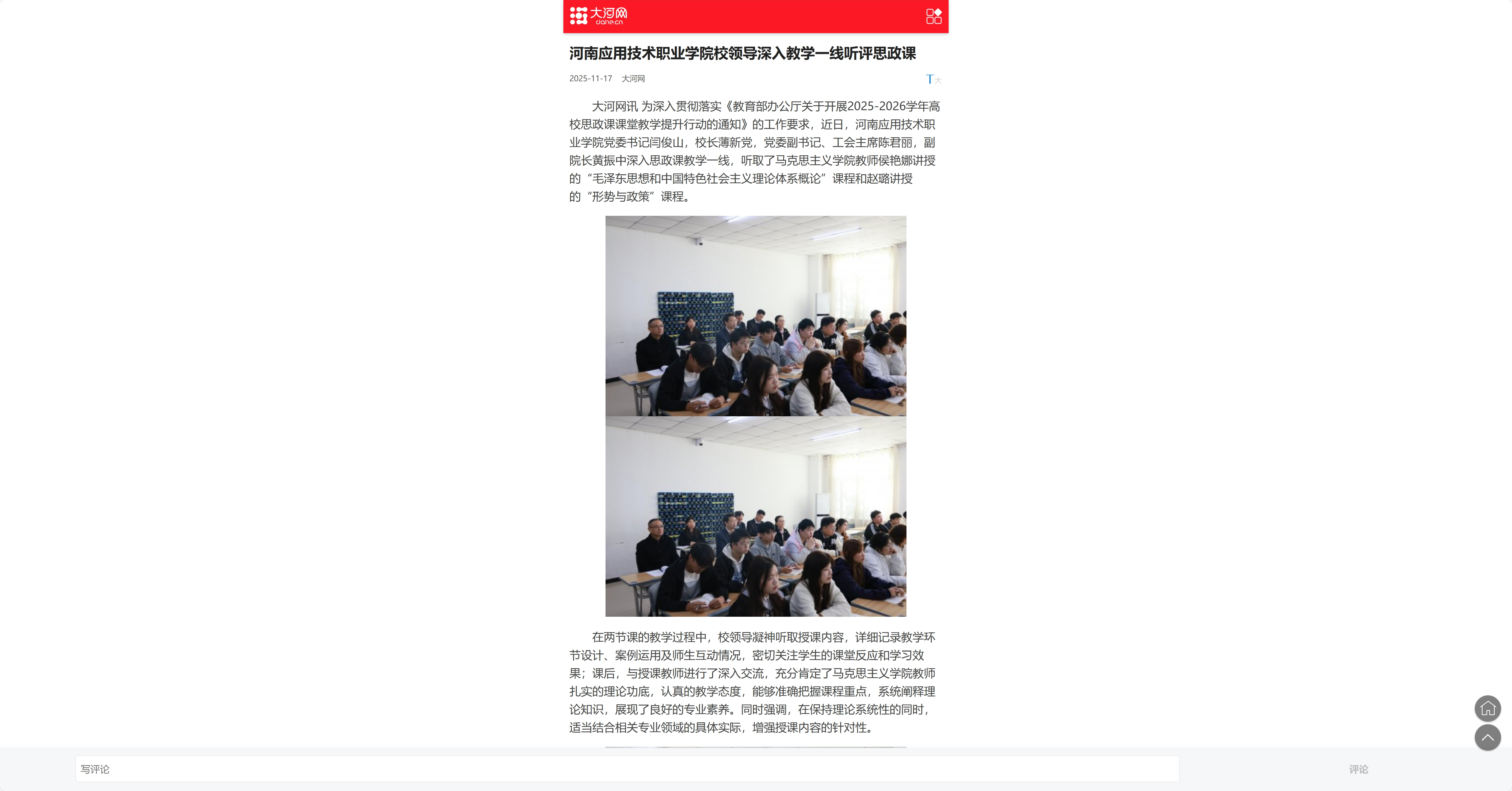 大河网:河南应用技术职业学院校领导深入教学一线听评思政课-手机大河网