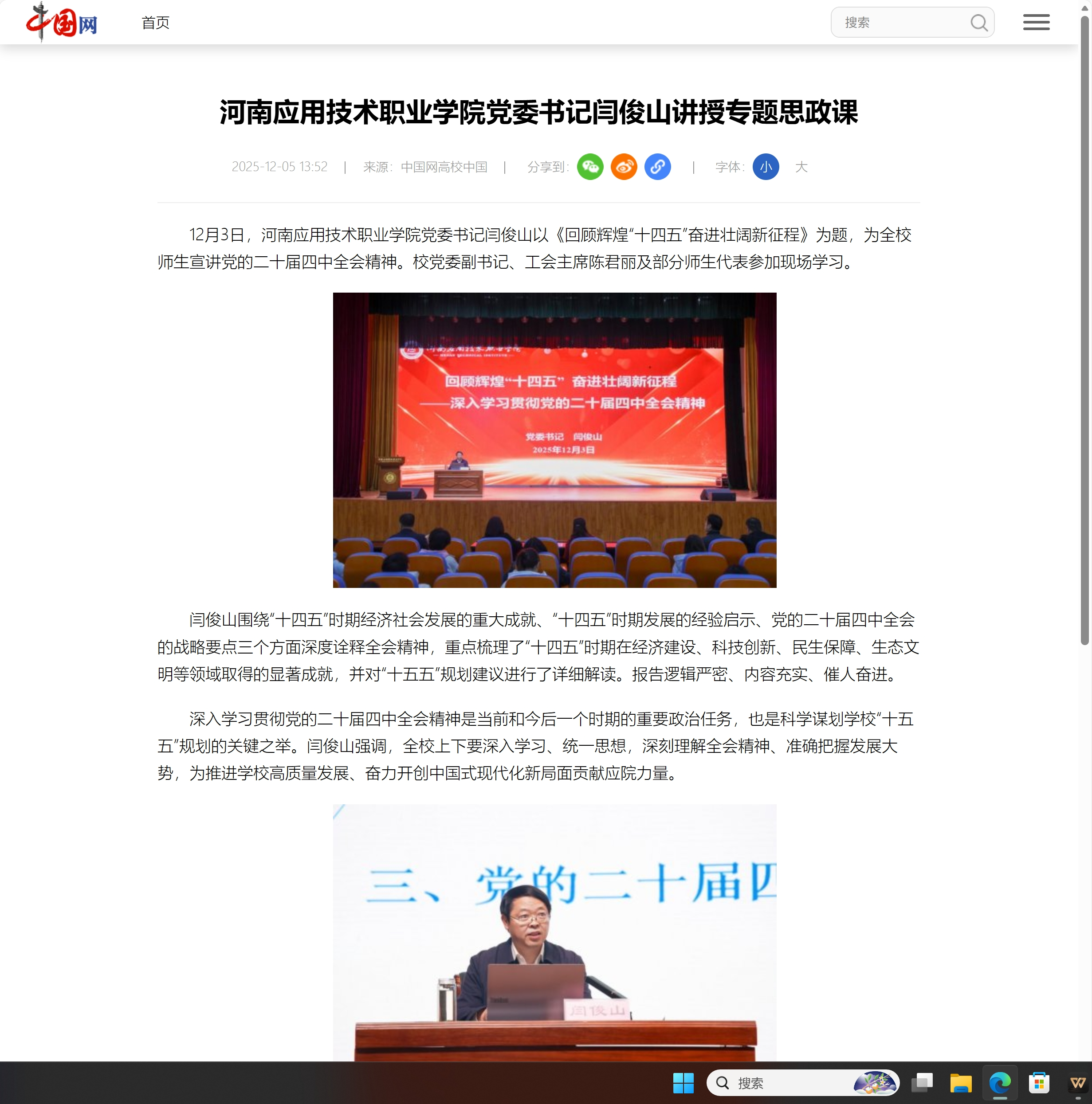中国网:河南应用技术职业学院党委书记闫俊山讲授专题思政课-中国网
