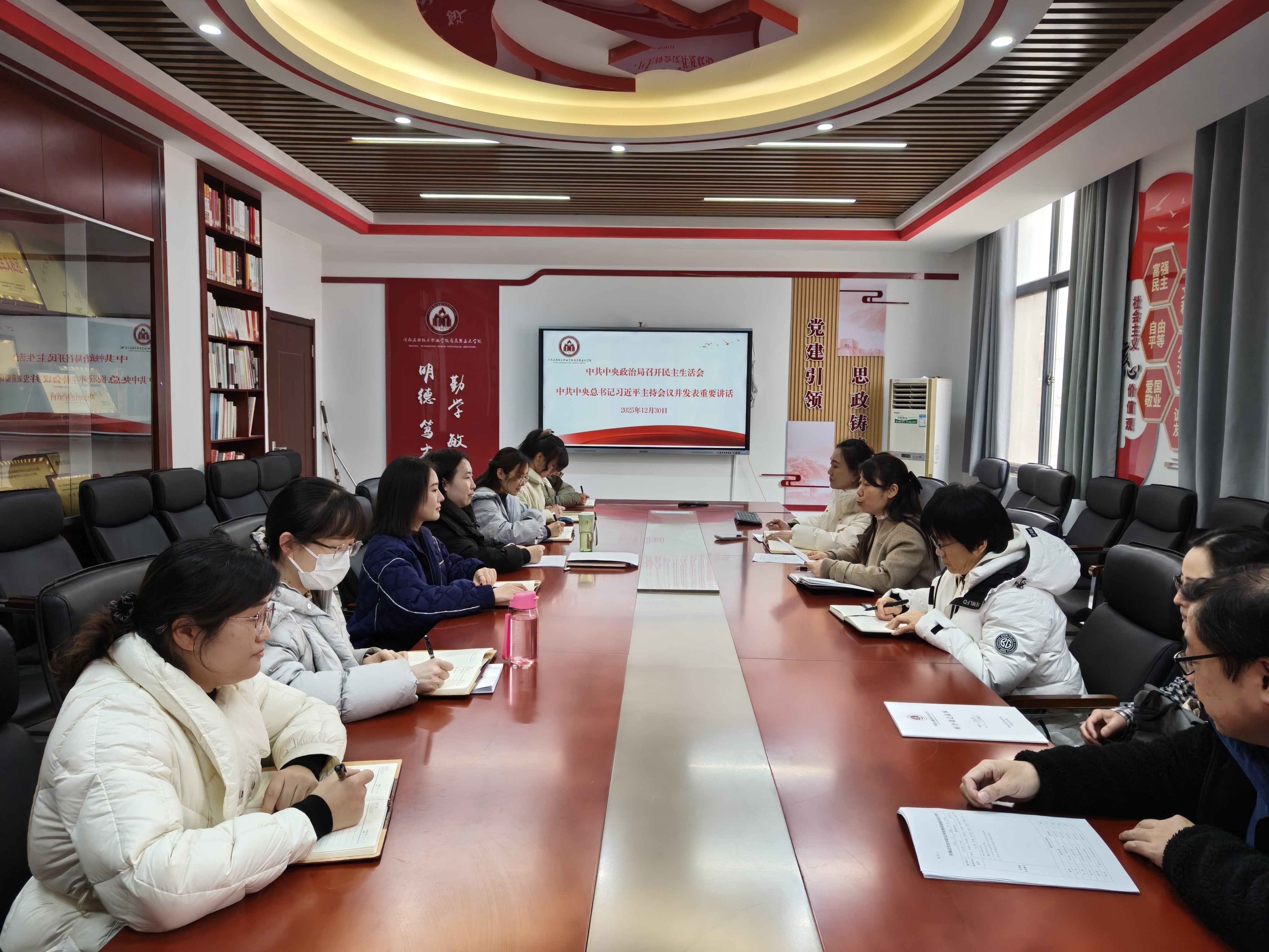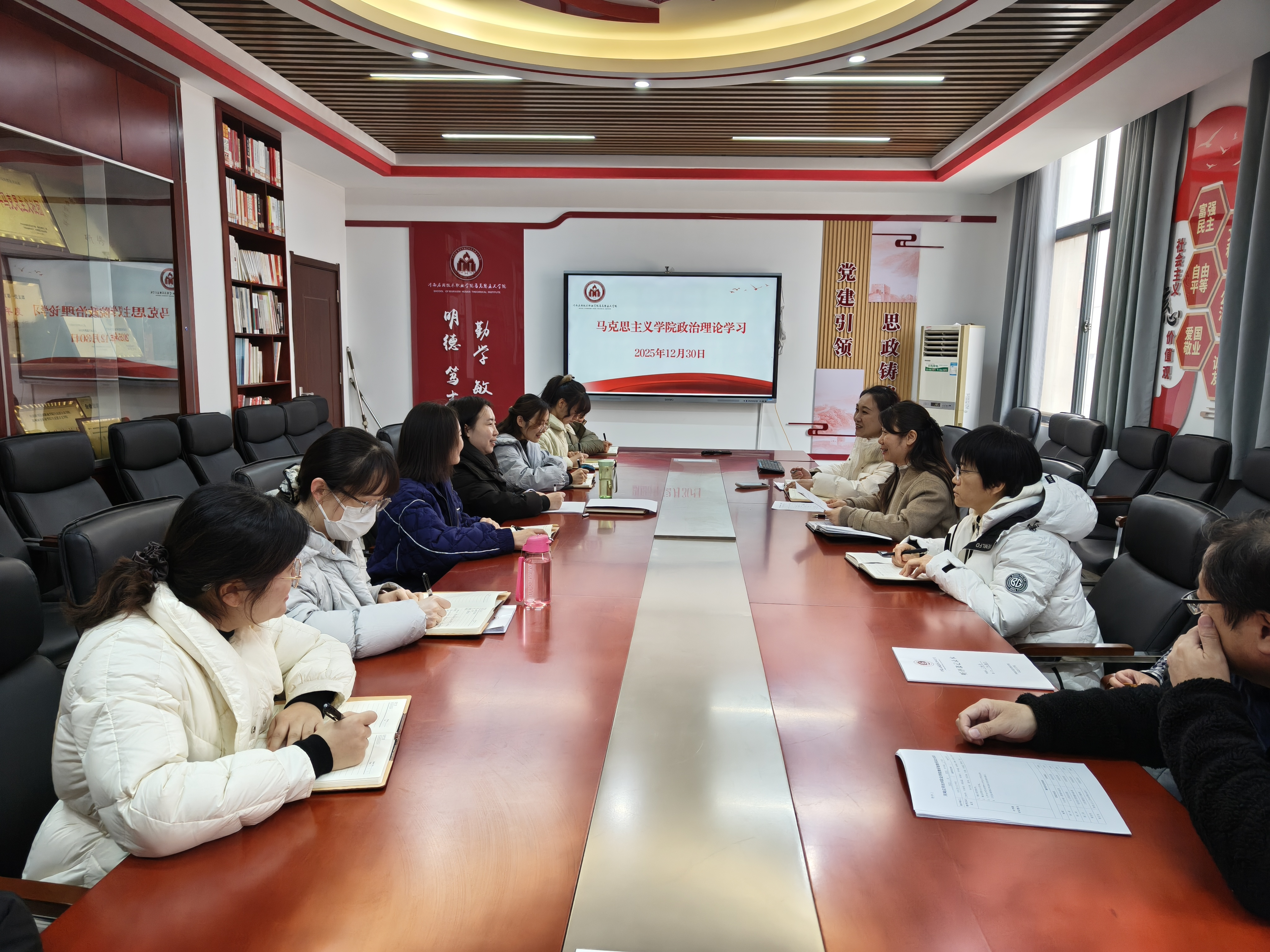 2025年12月30日下午,马克思主义学院党总支召开全体教师政治理论学习会,会议由马克思主义学院党总支副书记马丽主持。