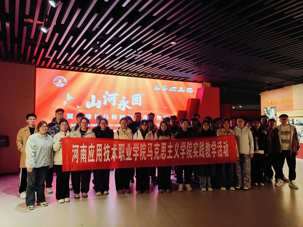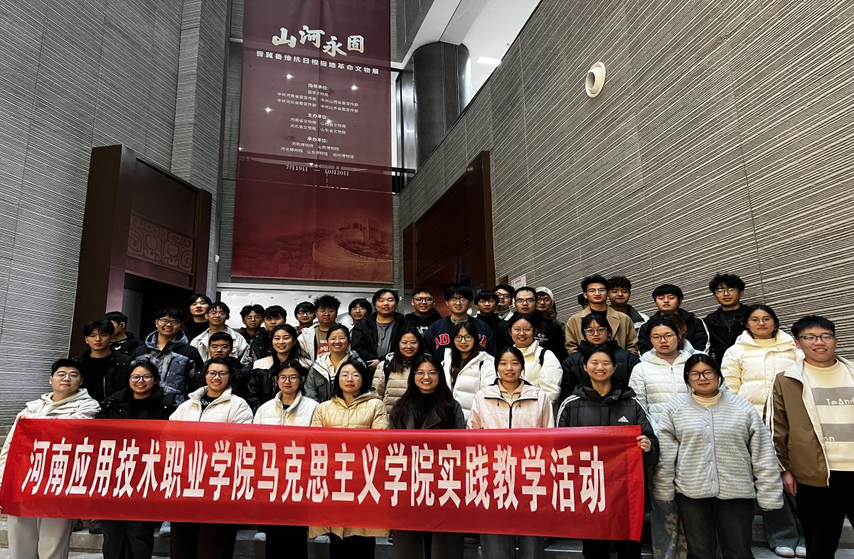 2025年12月4日,河南应用技术职业学院马克思主义学院以“行走的思政课堂”为载体,组织学生赴郑州博物馆开展实践教学活动。在“山河永固——晋冀鲁豫抗日根据地革命文物展”展厅,通过沉浸式观展、互动式研讨等多元形式,将思政理论课堂与革命历史现场深度融合。师生们驻足于珍贵文物前,透过历史实物回望峥嵘岁月,在红色文化浸润中感悟精神伟力。