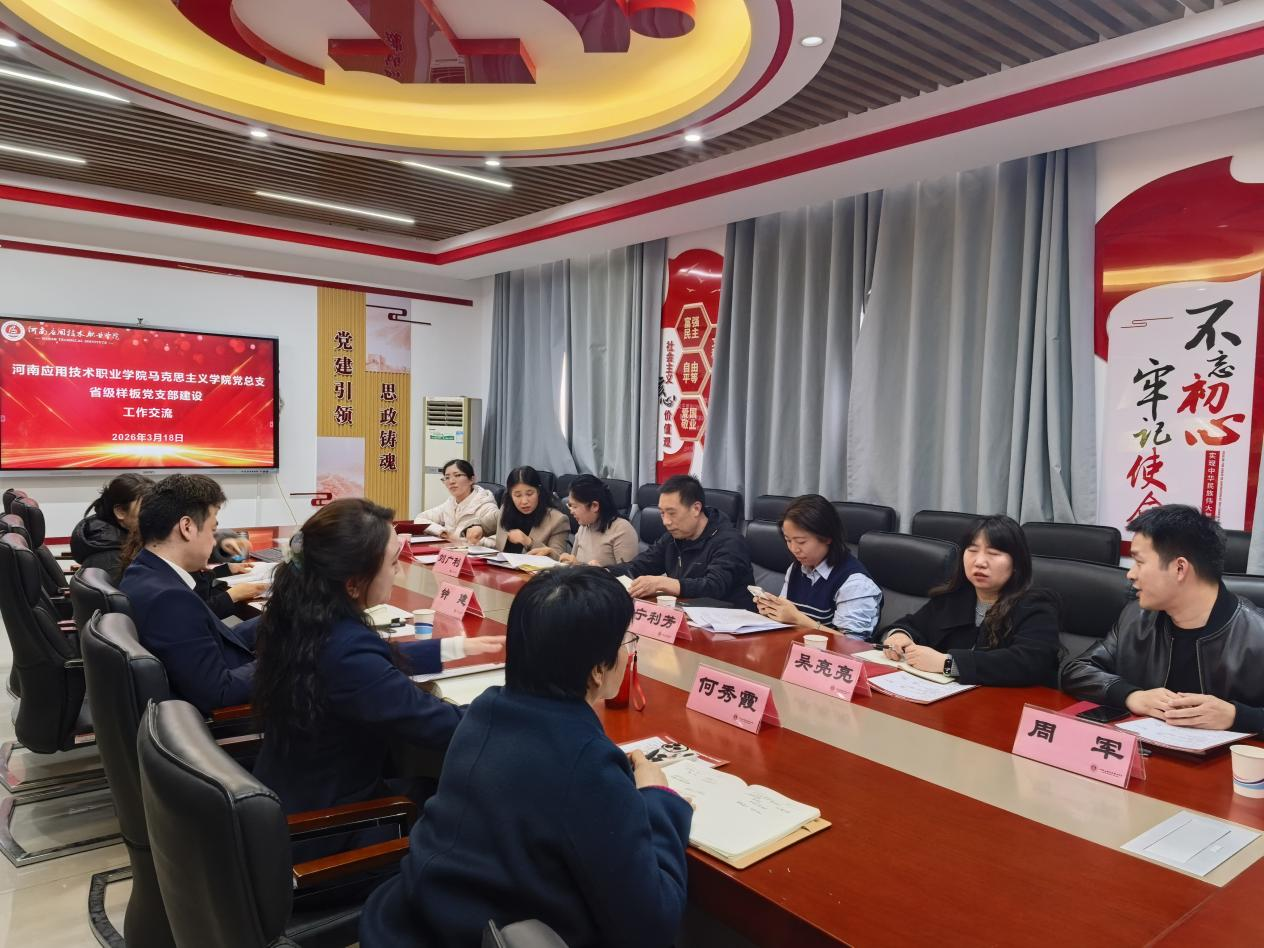 为深入学习贯彻习近平总书记“3·18”重要讲话精神,持续推动思政课教学改革创新,助力马克思主义学院高质量发展,2026年3月18日,我校马克思主义学院联合河南建筑职业技术学院马院和郑州城建职业学院马院在316活动室开展重温习近平总书记“3·18”重要讲话精神教育教学研讨会,河南建筑职业技术学院马克思主义学院党总支书记王永仁、院长刘广利和郑州城建职业学院党委委员、党委工作部部长、马克思主义学院党总支书记宁利芳分别带领两校马院干部及骨干教师代表参加本次研讨会。会议由学院党总支书记钟建主持。